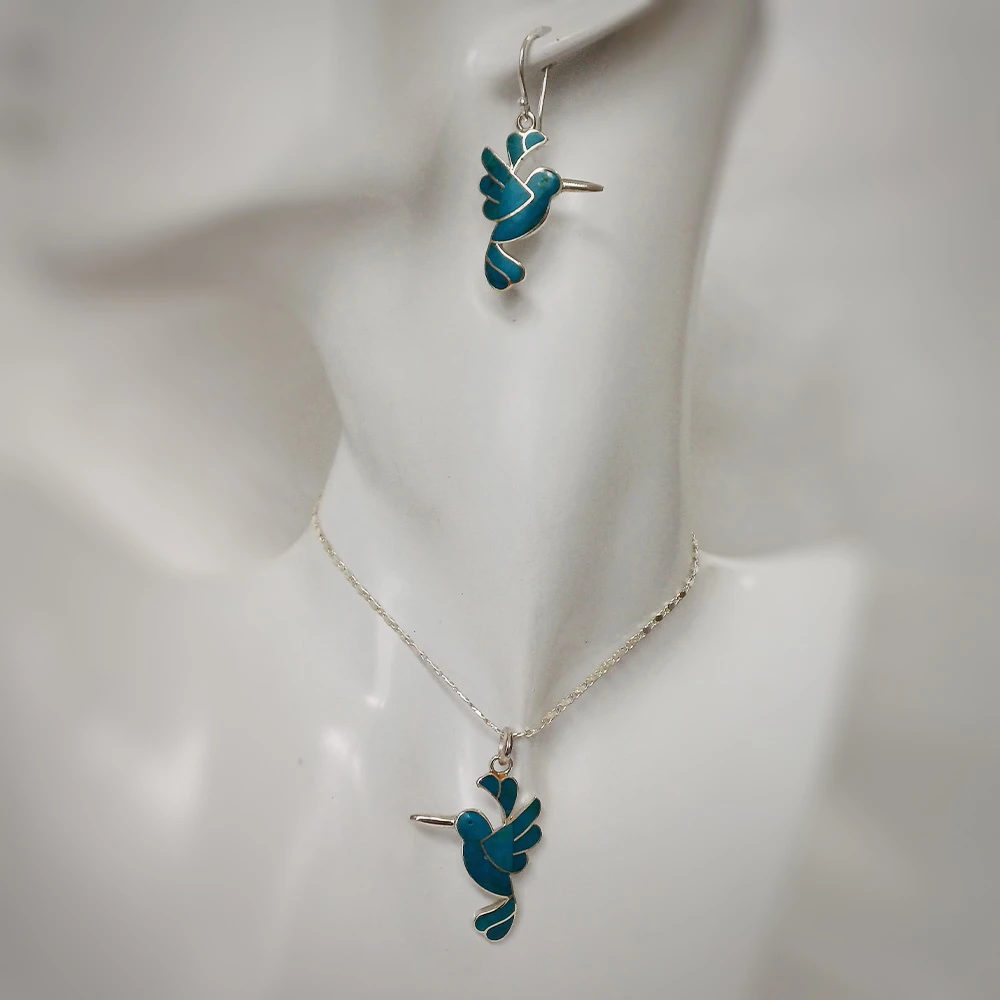El conjunto Colibrí Chrysocolla es una colección de joyería bellamente coordinada inspirada en la delicada gracia de los colibríes y la energía calmante de la chrysocolla. Este conjunto puede simbolizar la comunicación, la armonía y la renovación, haciendo una adición significativa a cualquier colección de joyas. Elaborado para evocar una sensación de serenidad y elegancia, es perfecto para quienes aprecian diseños simbólicos e inspirados en la naturaleza.