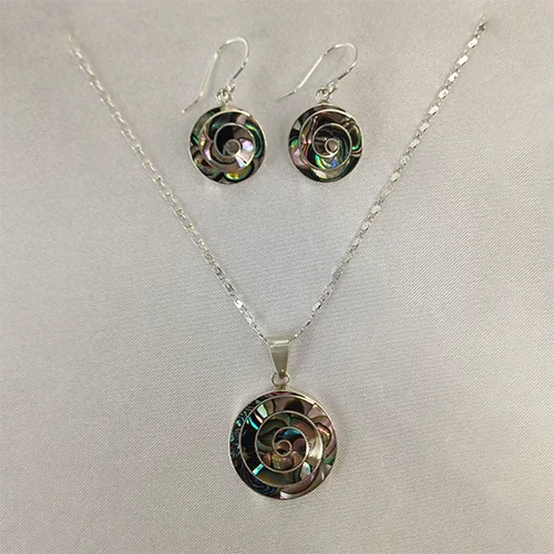 El conjunto Espiral Abulón I presenta un diseño bellamente elaborado inspirado en la elegancia natural. A menudo asociado con energías calmantes y relajantes, este conjunto puede simbolizar armonía y equilibrio. Su intrincado motivo de espiral añade un toque de sofisticación y significado espiritual a cualquier colección de joyería.