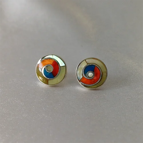 The Spiral Rainbow (size S) stud earrings feature a vibrant, colorful design inspired by the natural beauty of rainbows. Their spiral shape can symbolize growth and transformation, making them a meaningful addition to any jewelry collection. Perfect for adding a touch of cheerful elegance to everyday wear.